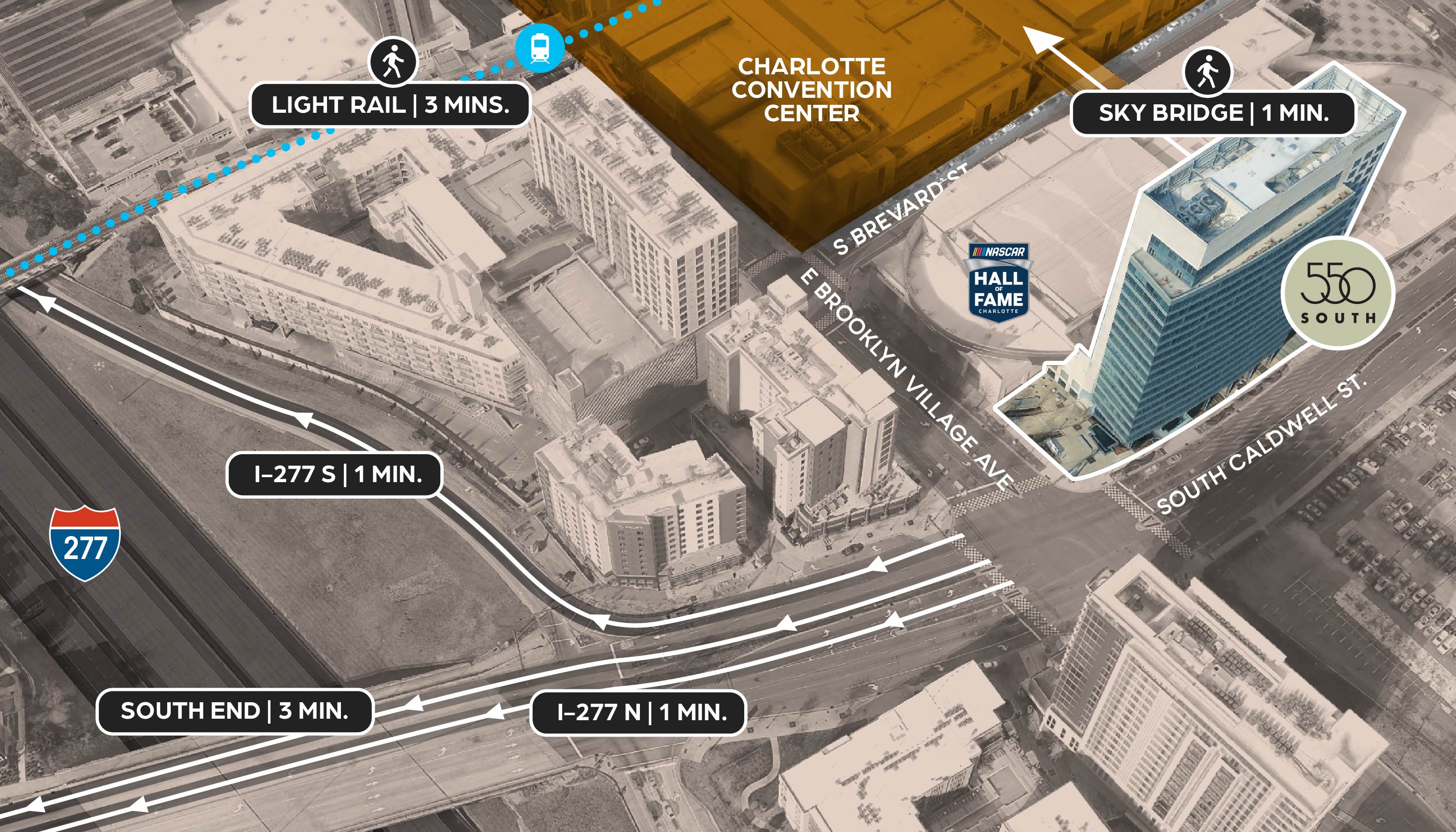 Positioned on the front door of Uptown Charlotte, 550 South offers unparalleled connectivity for both business and lifestyle. With direct access to I-277, commuting is seamless from every direction, while walkable proximity to acclaimed restaurants and hotels ensures convenience for clients and employees alike. Just steps away, the Charlotte Convention Center provides direct access for networking, events, and gatherings, creating a one-of-a-kind hub where work and opportunity converge.